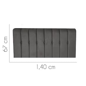 - Largura: 140 cm; - Altura: 67 cm; - Profundidade: 11 cm; - Produto estofado; - Produzido em Madeira de Pinus e Eucalipto.