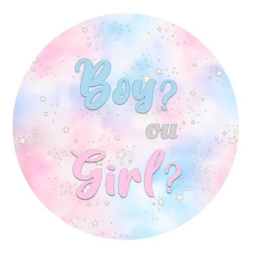 Painel Festa Redondo Sublimado 3D Te Chá Revelação Boy Or Gi