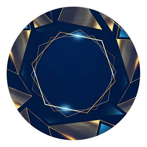 Painel Festa Redondo Sublimado 3D Teci Geométrico Dourado Az