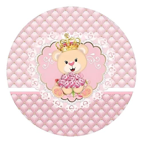 Painel Festa Redondo Sublimado 3D Tecido C/E Ursa Realeza Ro