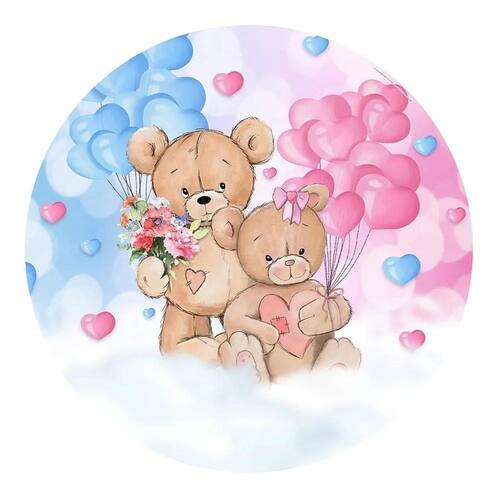 Painel Festa Redondo Sublimado 3D Tecido C/Elást Chá Revelaç