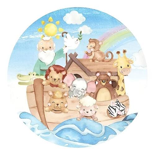Painel Festa Redondo Sublimado 3D Tecido C/Elástic Arca De N