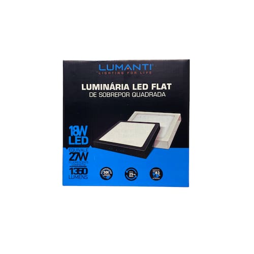 Painel Flat LED 18W Sobrepor Preto Neutro 4000K - Lumanti