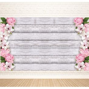 Painel Fotográfico Em Tecido Madeira Floral Rosa 2,80X1,50M