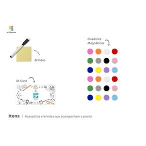 O que acompanha - 1 quadro de Metal 96x65cm. - 24 imãs circulares coloridos. - 1 Card Tecnológico.