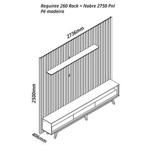 O Conjunto Painel Nobre Ripado + Rack Requinte, chega para agregar beleza e elegância ao seu ambiente. Um combo funcional e moderno que harmoniza facilmente com diversas decorações, o painel dispõe de ripas autênticas 100% MDF e uma linda prateleira chanfrada com bordas laqueadas, que pode ser montada tanto na parte inferior quanto na parte superior do produto. Já o Rack conta com duas opções de pés, em madeira maciça ou rodízios com rodas duplas siliconadas, divisórias em vidro de 8 mm e gavetas com bordas chanfradas laqueadas e corrediças telescópicas. O conjunto possui LED em luz quente com difusor já inclusos.