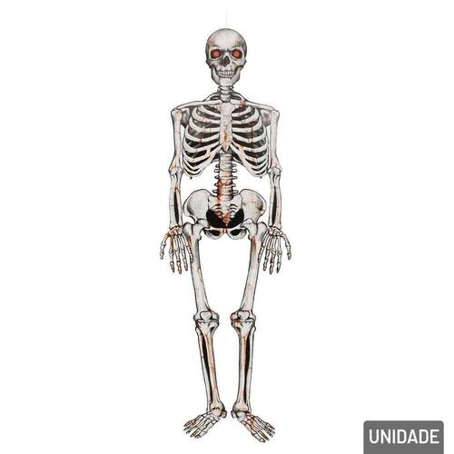 Painel Halloween de Papel 1,35m X 36cm Esquel Celebre o espírito arrepiante do Halloween com nossos acessórios, Painel Decorativo de Esqueleto Dobrável, uma adição intrigante para decorar sua festa. Esses acessórios captura a essência do macabro de uma maneira elegante e divertida.\nVariedades de Halloween para escolher entre decoração, fantasias, enfeites, utensílios e muito mais.\nEspecificações:\nMarca : SILVER\nTipo de material : Papel\nCores ou Estampa : Preto, Branco, Vermelho\nDimensões do Produto : 135 X 36 X 0,5 CM\nDimensões da Embalagem : 58 X 36,5 X 0,5 CM\nPeso Bruto (Gramas) : 0.106 Marca: Não Informado