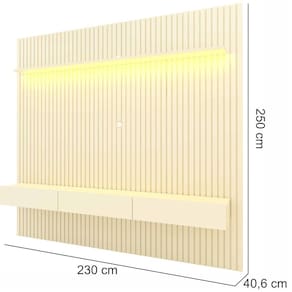 Largura: 230 cmAltura: 250 cmProfundidade do Painel: 5 cmProfundidade c/ Home: 35,8 cmPeso: 122 KgGarantia: 03 MesesInformações: Sobre Montagem: Não possuímos serviço de montagem. Todos os móveis possuem garantia e manual de montagem, Não nos responsabilizamos pelos custos de montagem. É de extrema importância ficar atento às dimensões dos produtos, pois é de sua total responsabilidade caso o produto tenha dimensões superiores ao local de acesso da entrega dificultando ou impossibilitando que a mesma seja concluída. Não nos responsabilizamos, no ato da entrega, por subir escadas, corredores e elevadores ou transporte por guincho em apartamentos. Não nos responsabilizamos por transtornos com a entrega caso o produto necessite de desmontagem, nem pelos custos gerados por esta situação. Imagens meramente ilustrativas a cor, pode variar de acordo com a iluminação do ambiente. Itens de decoração não inclusos.