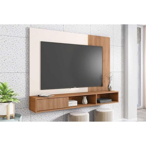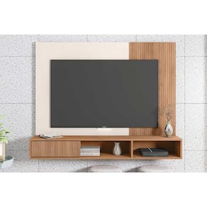 Painel Home p/ TV até 55 Pol Ritmo Ripado c/ 1 Porta e 2 Nichos 136x180cm Freijo/Off White - Caemmun