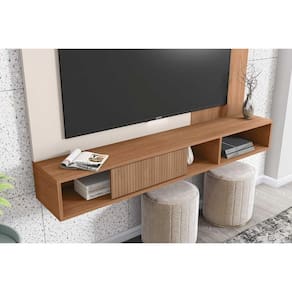 Tipo de Porta - Portas de Correr Material do Trilho da Porta de Correr - Trilho em PVC Quantidade de Portas - 1 Porta de Correr Quantidade de Prateleiras - 1 Prateleira Quantidade de nichos - 2 Nichos Ideal para TVs até (Polegadas) - 55