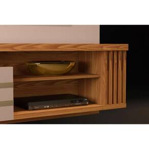 Painel Home p/ TV até 55 Pol Marin c/ 1 Porta e Torre Ripada 160x153cm Off White/Freijó - DJ Móveis