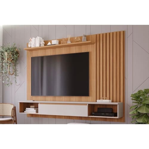 Painel Home p/ TV até 65 Pol Bahamas Ripado c/ 1 Porta 215X157cm Nature/Off White - Permóbili