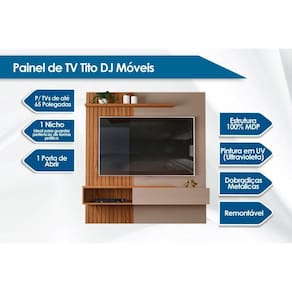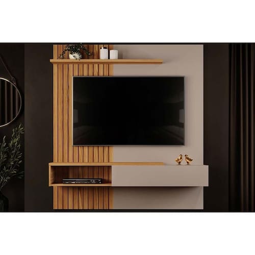 Painel Home p/ TV até 65 Pol Tito Ripado c/ 1 Porta 150x164cm Griz/Carvalho - DJ Móveis - Blush