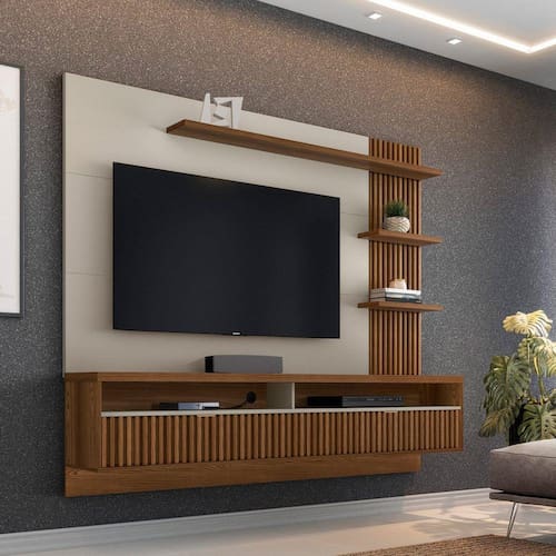 O Painel Home Araruna veio para encantar! Seu painel com detalhes ripado deixa sua sala ainda mais sofisticada. O Painel Home Araruna conta com duas portas basculantes com pistão a gás e puxador metálico, nichos para aparelhos eletrônicos e prateleiras para decoração. Possui espaço para TV de até 65 polegadas. Sua sala ficará mais completa com o Painel Home Araruna. Acabamento: Pintura UV Acabamento da Porta: Pintura UV Acabamento da Prateleira: Pintura UV Altura: 174 cm Ambiente Principal: Sala de Estar calculo: unidade Complexidade da Montagem: Média: pode ser montado por mais de uma pessoa e/ou necessite de maior conhecimento para montagem Cr: Freijó/Off White Cr do Produto: Freijó/Off White Escala de Brilho: Fosco Escala de Brilho da Porta: Fosco Escala de Brilho da Prateleira: Fosco Estilo: Moderno Ideal para TVs até (Polegadas): 65 Itens Inclusos: 1 Painel Home Largura: 203 cm Manual de Especificação Técnica: https://cdn2.madeiramadeira.com.br/atributo/linea-brasil/716162-painel-home-araruna-810006054-v1.pdf Manual de Montagem e Instalação: https://cdn2.madeiramadeira.com.br/atributo/linea-brasil/716161-painel-home-araruna-810006054-v1.pdf Material da Porta: MDF Material da Prateleira: MDP Material do Puxador da Porta: Alumínio Material Principal: MDF/MDP Montagem Flex: Não Necessita Montagem: Sim Origem do Produto: Nacional Painel para TV Integrado: Sim Peso: 80,8 kg Peso Máximo por Prateleira: 5 kg Possui Espelho: Não Possui Gavetas: Não Possui iluminação: Não Possui Nichos: 02 Possui Pés: Não Possui Portas: 02 Possui Prateleiras: 03 Possui Vidro: Não Profundidade: 35 cm Recomendações de Uso, Manutenção e Limpeza: Limpeza com pano úmido. Sistema de Montagem: Parafusos, cavilhas e minifix. status-cadastro: Aprovado Suporta Até (kg): 40 kg Tipo de Dobradiça/Corrediça da Porta: Metálica Tipo de Porta: Basculante Tipo de Puxador da Porta: Externo