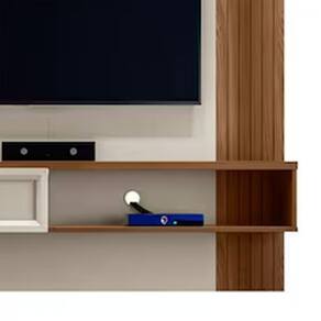 FICHA TÉCNICA DETALHADA: Produto: Painel Home Modelo: Pitanga Marca: Não especificada Material da Estrutura: MDF e MDP Acabamento: Finish Foil e Pintura UV Portas: 1 basculante Espaço para TV: Até 60 polegadas Dimensões máximas da TV (L x A): 120 cm x 102 cm Peso Suportado no Painel: Até 40 kg Prateleiras: 2 prateleiras com capacidade para 5 kg cada Espelho: Sim (48 cm de altura x 18 cm de largura) Vidro: Sim (não temperado) Tipo de Ripado: Ripas de madeira em alto relevo Espaço Passa Fios: Sim Fixação na Parede: Necessária Montagem: Média complexidade (parafusos, cavilhas e Minifix) Garantia: 3 meses