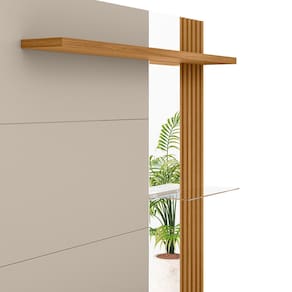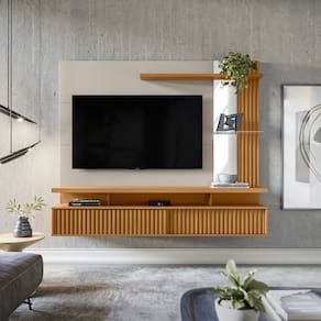 O amplo espaço para TV do Painel Home Maragogi transforma sua sala em um verdadeiro cinema para família e amigos! Além disso, ele possui nichos organizadores, ideais para colocar aparelhos eletrônicos. Com muito charme você pode exibir na prateleira superior e prateleira de vidro suas decorações preferidas. Além de tudo, o painel home Maragogi dispõe de duas portas deslizantes com detalhe em ripado para que você possa guardar com estilo aqueles objetos úteis do dia-a-dia, mas que não precisam aparecer.