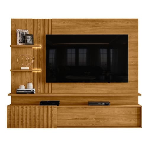 Painel Home Suspenso Atena Cumaru Para Tv Até 65 - Madetec Cumaru Painel Home Suspenso Atena para TV até 65 - Madetec O Painel Home Suspenso Atena é o toque que faltava para tornar sua sala mais bonita e aconchegante. Com detalhes ripados no painel e em uma das portas, além de duas fitas de LED que acrescentam modernidade e sofisticação ao ambiente, este móvel é uma escolha elegante. Ele também possui três portas de correr, facilitando a movimentação e a limpeza e é ideal para TV até 65. ESPECIFICAÇÕES: - Estrutura em MDP - Pintura UV - 3 Portas de correr - 1 Porta com detalhe ripado - Painel com detalhe ripado - Prateleiras - 2 Fitas de LED - Painel desenvolvido para ser fixado na parede - O televisor deve ser fixado no painel - Ideal para TV até 65