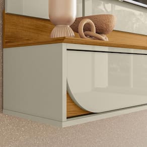 O Painel Home Suspenso Aura une praticidade e design moderno para valorizar sua sala. Produzido em MDP com pintura UV, possui detalhes em frisos verticais que destacam o visual do móvel. Conta com 2 portas deslizantes com acabamento curvado, além de tampo e prateleira superior com borda frontal chanfrada. Desenvolvido para ser fixado na parede, proporciona um ambiente organizado e elegante. Ideal para TV até 65, é a escolha certa para quem busca estilo e funcionalidade em um só produto.