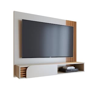 Ideal para TVs de até 60 polegadas, otimizando o espaço e trazendo mais leveza ao ambiente. Conta com nichos abertos e prateleiras funcionais, perfeitos para acomodar aparelhos eletrônicos, objetos decorativos ou livros.