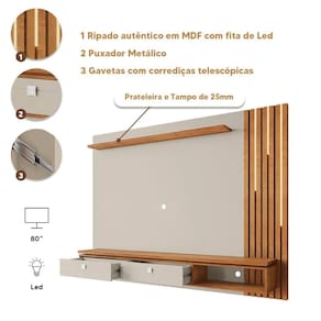 - Espaço para TV de até 80 polegadas: Projetado para acomodar uma TV de até 80 polegadas, oferecendo um suporte amplo e seguro para sua experiência de entretenimento em casa.