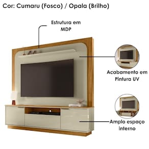 Painel Home Theater Nilo Para Tv 75 Pol 2 Portas 200 Cm Cumaru Opala Madetec Cumaru Opala