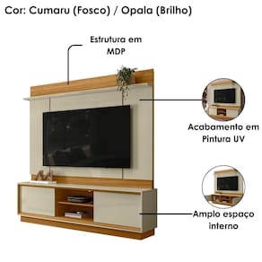 Painel Home Theater Siena Para Tv 75 Pol 2 Portas 184 Cm Cumaru Opala Madetec Cumaru Opala