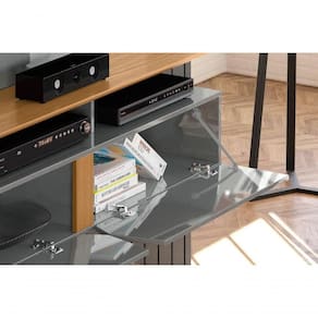 Este painel em Cinza Perolizado e Tauari é perfeito para quem deseja um design moderno e sofisticado, com um toque de elegância e praticidade.