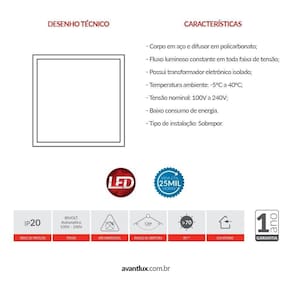 SOBRE A FABRICANTEA AVANT é uma empresa genuinamente brasileira, especializada em produtos para iluminação e posicionada entre as maiores empresas do segmento. É reconhecida pela excelência e qualidade de seus produtos e por manter uma grande e sólida parceria de longo prazo com seus clientes. Está presente em todos os estados brasileiros, com uma estrutura de profissionais aptos e experientes, prontos para atender as diversas necessidades de seus clientes, com eficiência e comprometimento. Prestigiada por profissionais e consumidores, é considerada pioneira no lançamento de produtos modernos e inovadores, presente na diversidade e qualificação de seu portfólio.SOBRE O PRODUTOO Painel Modular Sobrepor é indicado para ambientes com forro modular e também para forros convencionais. Utilização Ideal como Sobrepor.INFORMAÇÕES TÉCNICASCor: BrancoDimensões compatíveis com forro modulares de 625x625mm e 1250x625mm.Temperatura ambiente: -5C a 40C.Tensão nominal: 100V a 240V (BIVOLT).Baixo consumo de energiaEmissão De Luz NeutraTemperatura de Cor: 4000KPotência: 45 Watts