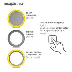 Painel Led Taschibra Redondo Sobrepor 18+6W Dual Color Black Bivolt Características Gerais do Produto: Dimensões AxLxP CM : 3,6 x 20,5 x 20,5 Formato: Redondo Cor da luz: 6500K Frio - 3000K Quente Produzido em: Plástico de Engenharia, Alumínio, Placa de Circuito Impresso e Componentes Eletrônicos Voltagem: Bivolt Utilizado em 110V e 220V Alimentação: Energia elétrica Cor acabamento: Preto Potência: 24W Fluxo luminoso: 1.400 Lumens Eficiência luminosa: 78 Lm/W IRC: 80 Ângulo de abertura: 120 : 1 ano junto ao fabricante Aplicação: Sobrepor Vida útil: 20.000 horas Acompanha lâmpada: Não necessita, LED já integrado Ajuste de intensidade Dimerizar : Não Acompanha o produto: 01 Painel Led Completo 01 Driver Ligação 01 Kit Instalação : 1 ano junto ao fabricante