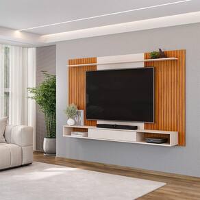 Painel Leo Com Ripas E Prateleira Freijó Com Off White Com design minimalista e proporções compactas, o Painel Leo é a escolha ideal para ambientes que valorizam a praticidade sem abrir mão da elegâ visual clean facilita a composição com diferentes estilos de decoração, enquanto a estrutura funcional acomoda TVs de até 70 tampo usinado reforça o acabamento de alto padrão, e os detalhes discretos agregam sofisticação ao mó para salas, quartos ou até mesmo espaços gourmet, o Painel Leo transforma qualquer ambiente com charme e ões:Altura: 136cmLargura: 215cmProfundidade: 28cmObservações:- Ideal para TVs de até 70 polegadas- Tampo com usinagem e acabamento refinado- Visual limpo, sem puxadores ou excessos- Estrutura compacta e de fácil instalação- Versátil para diferentes ambientes da casa- Produzido em MDP e MDF