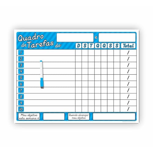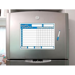 Os Nossos Imãs para geladeira são impressos com tinta Eco-Solventes com qualidade fotográfica em Vinil Autocolante e depois fixado em uma Manta Magnética com 0,8 mm espessura, ideias para serem fixados em geladeiras. São ideais para quem quer fazer mudanças no ambiente da cozinha de sua casa sem gastar muito, além do seu preço acessível dispensa a contratação de profissionais, já que você mesmo a pode fazer a instalação. Painel Magnético Quadro de Tarefas. Medida do painel: 40 cm x 30 cm. O painel magnético colorido é perfeito para recompensar o bom comportamento das crianças em casa, creches ou escolas. Como utilizar: 1- Relacione as tarefas; 2- Marque se as mesmas foram concluídas ou não; 3- Defina o nº de pontos e a recompensa por semana. uma caneta azul com imã e apagador + recarga azul Recomendações: - Faça a limpeza periódica do seu quadro de tarefas com removedor. Prazo de envio de até 2 . Marca: Não Informado