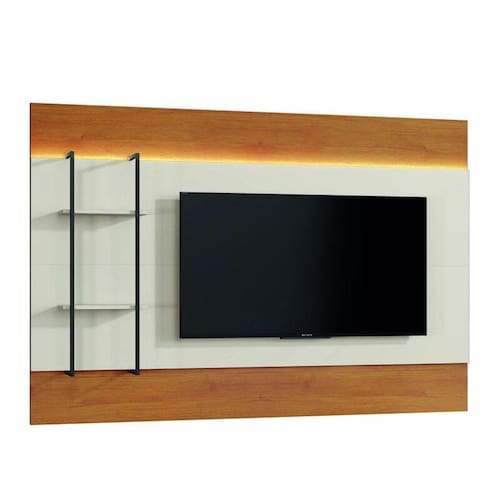 Painel Moderno para TV com LED - Ravena-Naturale/Off White - Mavau Móveis