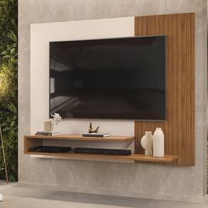Painel Nando Com Ripas E Prateleira Freijó Com Off White Com design contemporâneo e funcionalidade na medida certa, o Painel Nando é ideal para transformar sua sala de estar em um ambiente moderno e bem modelo acomoda TVs de até 50 polegadas e conta com espaço superior para itens decorativos, além de nicho central para aparelhos eletrô diferencial está no acabamento sofisticado e no visual clean, que valoriza o ambiente sem estrutura garante durabilidade e resistência, enquanto as linhas retas proporcionam elegância e versatilidade na composiçãões:Altura: 107,8cmLargura: 136cmProfundidade: 26,9cmObservações:- Ideal para TVs de até 50 polegadas- Nicho funcional para eletrônicos e decoração- Estrutura resistente- Visual moderno e fácil de combinar- Perfeito para salas compactas ou ambientes integrados
