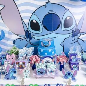 Design exclusivo: Estampa do Stitch, o personagem favorito da Disney, em um cenário tropical.