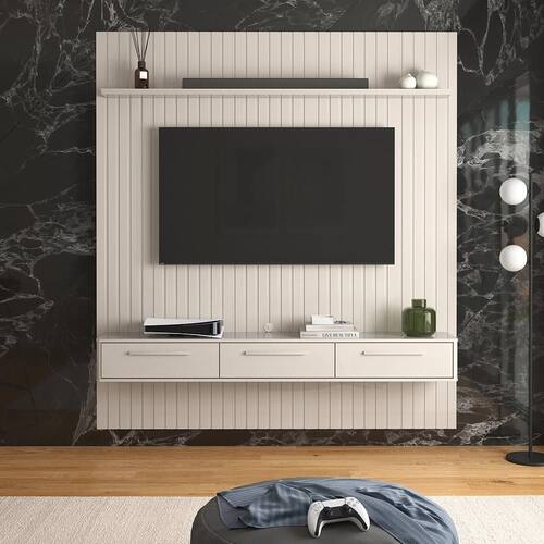 Painel Oslo Frisado Para Tv Até 75 Polegadas Off White - Lukaliam Móveis