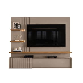 Painel P/ Tv 65 Pol. Bancada Supensa Atena Fendi Uma bancada suspensa e um movel fixado na parede que acomoda a televisao e dispositivos eletronicos, economizando espaco no chao e proporcionando um ambiente moderno e organizado. Ele foi desenvolvido pensando em oferecer um painel com caracteristicas indispensaveis para o dia a dia e ainda contribuir o ambiente com sofisticacao gracas ao seu design unico. Em termos de qualidade, ele e uma excelente alternativa para uma sala de estar moderna e agradavel gracas a estrutura em MDP e acabamento feito com metodo direct inverse printing que contribui para durabilidade e garante maior realce e brilho! Ja suas particularidades incluem 2 portas deslizantes que otimizam espaco sendo uma com frente ripada, 2 prateleiras com fita de LED criando pontos de luz e detalhes ripados no espaco para televisao ate 65 polegadas!