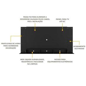 Conteúdo da Embalagem: 1 (um) painel para TV 4 (quatro) prateleiras de vidro