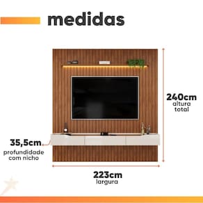 MODELO: Painel Para TV Até 65 Polegadas 2,23m Ripado Autêntico Com Led Montreal Com Nicho Efraín