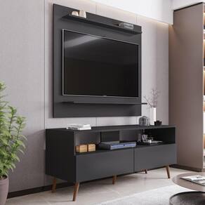 Transforme sua sala de estar em um verdadeiro paraíso de organização e estilo com o incrível e encantador Painel para 50 Pol Senna e Rack Bancada 136cm Versa Z34 Preto, da Mpozenato.