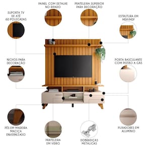 Transforme sua sala com o Painel Para 60 Pol 160cm e Bancada Amago H01 Cinamomo/Off, da Mpozenato, é uma ótima opção para quem busca um móvel moderno e sofisticado.
