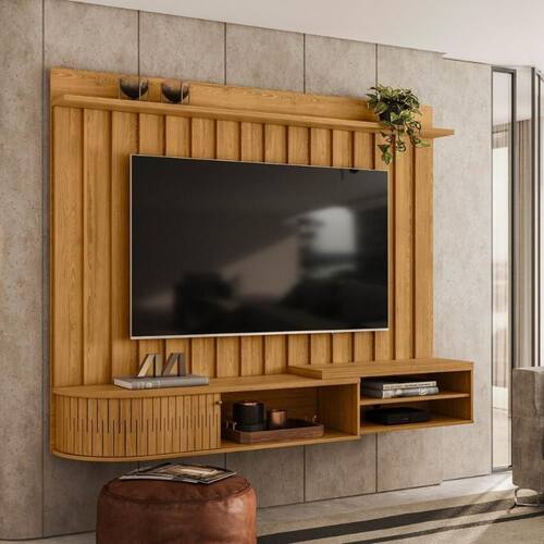 Esse Home é perfeito para o seu ambiente, contém deltalhes ripados e curvo no tampo e na base garantindo a elegância para a sua sala. Testado para TVs de 75 polegadas.