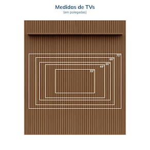 O Painel Aloe une elegância e funcionalidade. Com painel ripado em relevo de 15mm e estrutura em MDF 15mm, oferece sofisticação e praticidade. Disponível para TVs de até 72” e em acabamentos amadeirados Âmbar e Marrom, que seguem as tendências atuais do design. Produto Montado: Sim Acabamento: Pintura UV Acabamento da Prateleira: Impressão Ambiente Principal: Sala de Estar codigo_ean: 7900288230928 Complexidade da Montagem: Média: pode ser montado por mais de uma pessoa e/ou necessite de maior conhecimento para montagem Cor: Cedro Cor da Prateleira: Marrom Cor do Produto: Cedro Cor Interna: Cedro Escala de Brilho: Semi-Brilho Escala de Brilho da Prateleira: Semi-Brilho Espessura do Painel: 3,2 cm Fixação na Parede: Sim Ideal para TVs até (Polegadas): 72 Itens Inclusos: 1 Painel, Manual de Montagem e Kit Ferragens Linha ou Coleção: Aloe Manual de Montagem e Instalação: https://product-hub-prd.madeiramadeira.com.br/123636442/documents/441545d9-21b4-473d-bc84-91c1139994533213749600517581450051035.pdf Marca: CabeCasa MadeiraMadeira Material da Prateleira: MDF Material Principal: MDF Necessita Montagem: Sim Origem do Produto: Nacional Peso: 75,03 kg Peso Máximo por Prateleira: 5 kg Possui Espelho: Não Possui iluminação: Não Possui Passa Cabos: Sim Possui Pés: Não Possui Portas: Não Possui Prateleiras: Sim Possui Vidro: Não Quantidade de Nichos: Não Recomendações de Uso, Manutenção e Limpeza: A limpeza deve ser feita com pano macio, levemente umedecido com água e sabão neutro. Em seguida, passe um pano seco para evitar o acúmulo de umidade. Nunca utilize produtos abrasivos, esponjas de aço, alvejantes, álcool em excesso ou solventes, pois esses produtos podem agredir o acabamento e comprometer sua aparência. Sistema de Montagem: Parafusos Suporte de TV Universal Incluso: Não