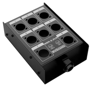 Painel 8 furações XLR sem conectores com 1 Saída.