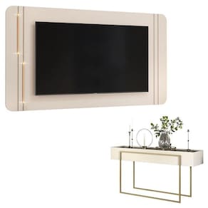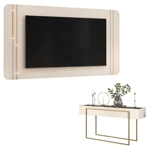 Está procurando móveis para montar sua sala? Apresentamos para você este belo conjunto composto pelo Painel para Suspenso e Aparador para Sala da linha Suri, fabricados pela DJ Móveis. O painel possui design diferenciado, conta com cantos arredondados, realçados por dois tubos metálicos com LED posicionados de forma intercalada, podendo ser instalados em ambos os lados. O aparador possui um design moderno e sofisticado, perfeito para complementar seu ambiente, é um produto versátil, que pode ser no hall de entrada, na sala de jantar ou na sala de estar, ideal para receber decorações, arranjos florais e utensílios como bandejas e taças, servindo de apoio e organizando o seu dia-a-dia. Combinando praticidade, design e sofisticação, é perfeito para quem está buscando qualidade e sustentabilidade para elevar o estilo do seu ambiente. Confira e aproveite!