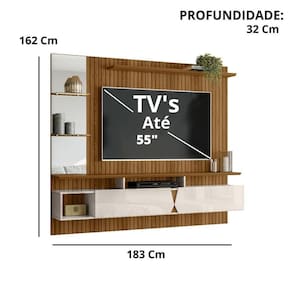 Versatilidade: Ideal para TVs de até 55 polegadas, com prateleiras para acomodar aparelhos eletrônicos e objetos decorativos.