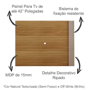 Painel Para PL3004. Com estilo para você compor sua sala, deixando sua decoração ainda mais elegante. Possui estrutura e suporte em MDP de 15mm, acabamento em pintura Uv (Semi Fosco). Possui detalhe decorativo na lateral ripado proporcionando um visual moderno, é ideal para TVs de até 42 polegadas, suporta até 15kg, com sistema de fixação resistente garantindo a do produto, conta com furação para passagem de cabos. Desenvolvido 100%, o que garante a resistência e vitalidade do produto, este Painel garante um visual clean e elegante ao seu ambiente. Este móvel chegará na sua casa separado em 01 volume.
