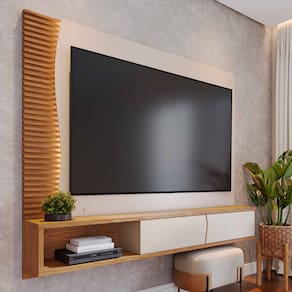 Renove sua sala de estar com o Painel para TV com Bancada Suspensa Patmos, da Lyam Decor, uma peça que combina estilo moderno e funcionalidade!