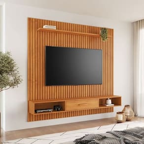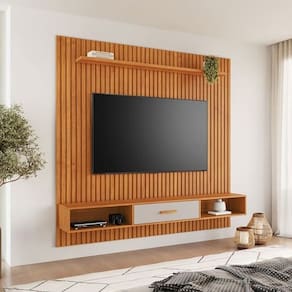 Características: Marca: JCM Modelo: Painel Alivio Painel Ripado MDP/MDF Gavetas com Corrediças Telescópicas Puxador de Madeira Prateleira para Decorações Produto com montagem Flex na frente de gaveta para Cinamomo ou Cinamomo Off Ideal para TV de 65 Polegadas Necessita de montagem: Sim Montagem e montador: Não inclusos Quantidade de volumes: 02