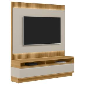Seu espaço de entretenimento nunca mais será o mesmo com o Painel Para TV 70 Pol e Rack Bancada 180cm Real L06 Tauari/Off White Fosco, da Mpozenato.