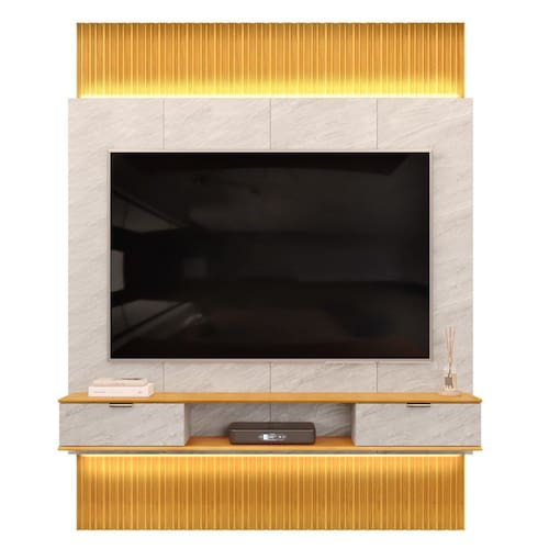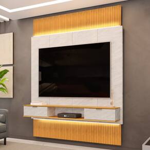 Ideal para você que quer sofisticação e muita elegância para sua Sala De Estar, o Painel Para TV 75 Pol Canelado Extensível Piso ao Teto D04 Quartzo/Cedro, da Mpozenato é uma excelente escolha.
